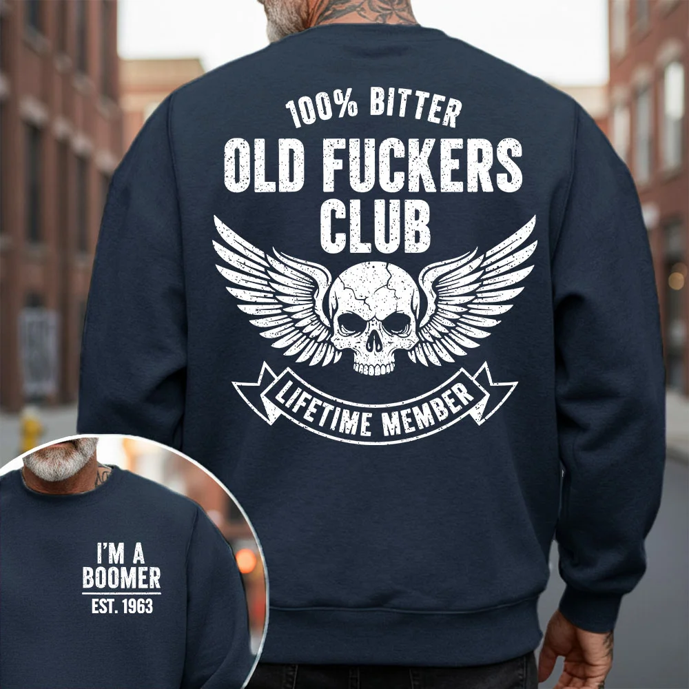 100% Bitter Boomer Club Sweatshirt – Lifetime Member, Skull & Wings Design Tee, Hoodie, Custom Year Of Birth Sweatshirt