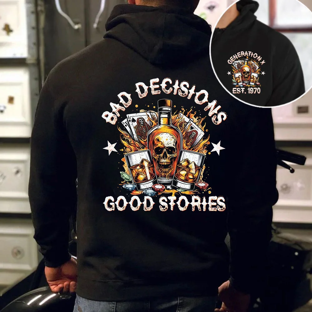 Bad Decisions Good Stories Generation X Hoodie, 2-Sided Print Sweatshirt, T-shirt